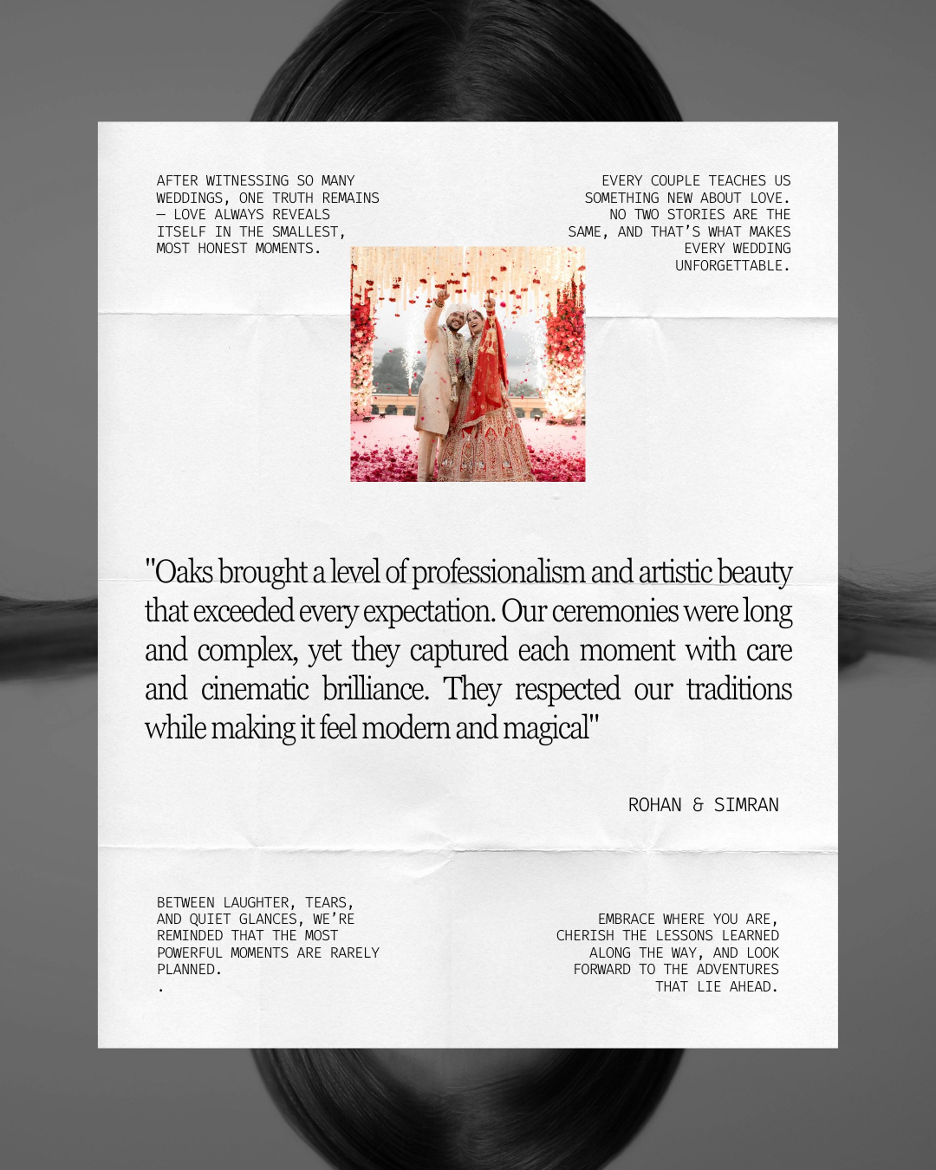Recognized by leading wedding publications, Oaks is more than a team — we are architects of emotion, creators of legacy, and storytellers of timeless love.